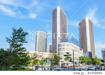日本の川崎都市景観 武蔵小杉駅前の「ららテラス武蔵小杉」やタワーマンション群などを望む
