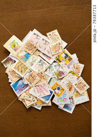真俯瞰から見たたくさんの使用済みの切手