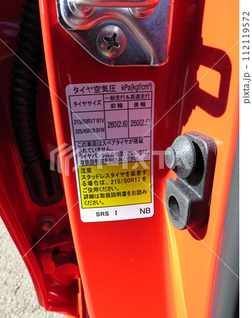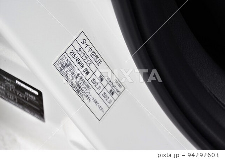 車のドアに貼ってある空気圧のシール