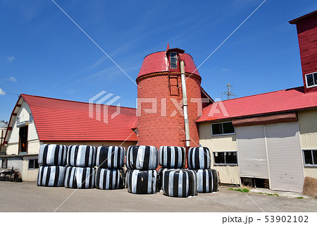初夏の北海道倶知安町でサイロのある牧場の風景を撮影