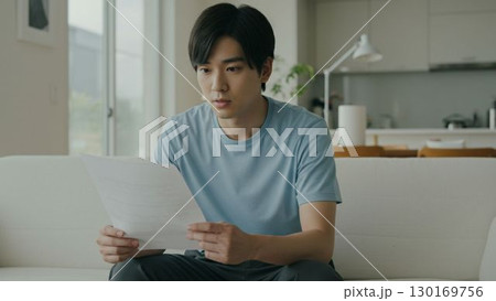 自宅で書類を確認している男性