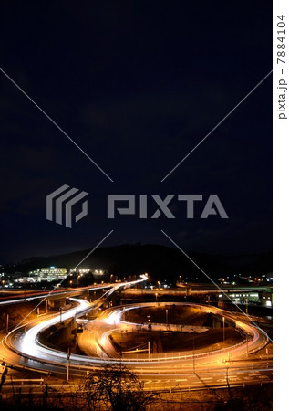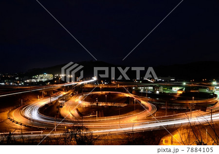らせん状にループする黒川インターチェンジの長秒露光写真
