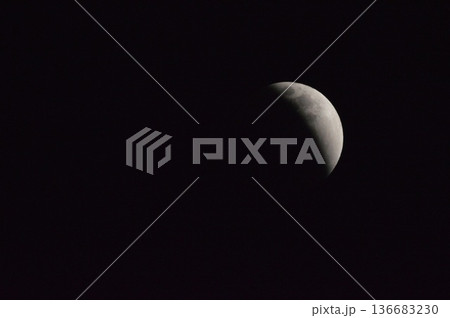 Partial Lunar Eclipse Over Night Sky