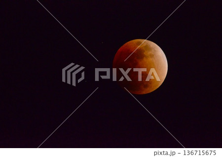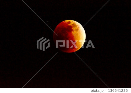 星空に浮かぶ皆既月食(ブラッドムーン)