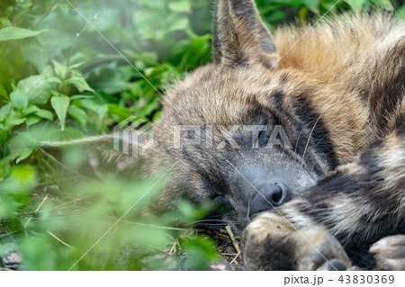 眠るシマハイエナ
