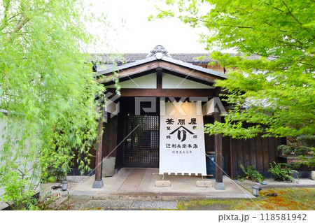 茶の文字入りのれんと和の茶屋風建築 / Tea Noren at Traditional Japan