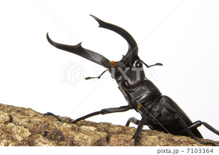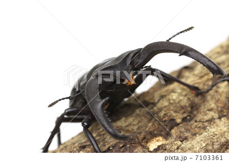 マンディブラリスフタマタクワガタ 樹木の上での白背景