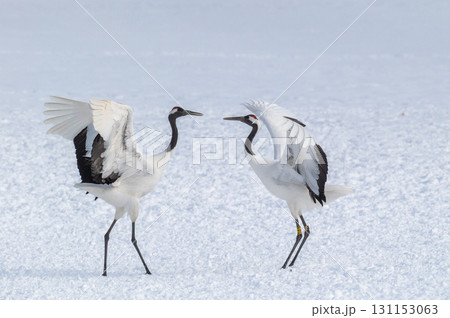 タンチョウ鶴の求愛ダンス-道東の冬景色