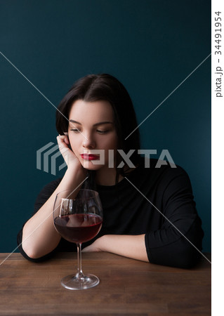 Lonely female in bar. Melancholic mood