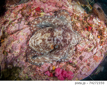岩に擬態するワモンダコ (メルギー諸島、ミャンマー)