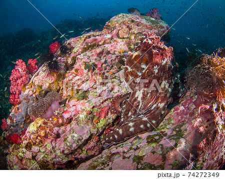 岩に擬態するオニダルマオコゼ (メルギー諸島、ミャンマー)