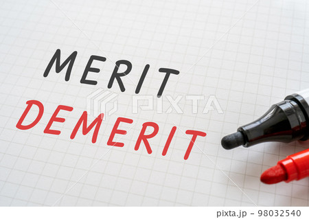 MERIT DEMERITと書かれたノートとマーカー