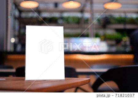 Stand Mock up Menu frame tent card blurred background design key visual layout in cafe