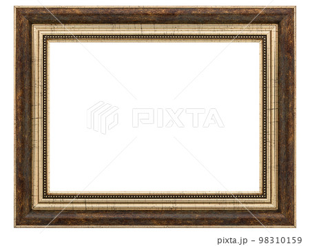 Antique Classic Old Vintage Wooden Rectangle mockup canvas frame isolated on white background. Blank and diverse subject moulding baguette. Design element. use for paint, mirror or photo