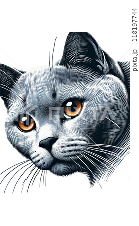 フランスのブルーシャルトルーズのモノトーン画像。青い被毛と銅色の目が特徴。