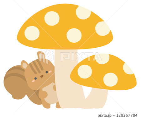 可愛いリスとキノコ