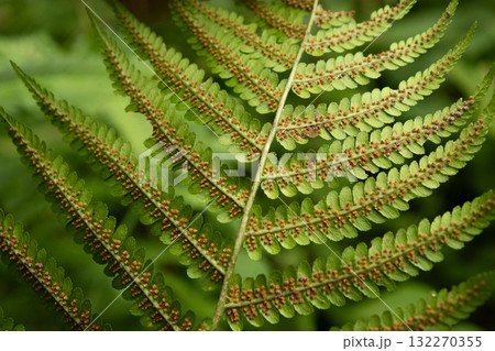 Fern Sori Close-Up, Brown Spore Clusters on Underside of Leaf