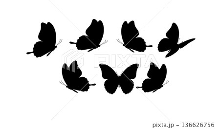 Black Solid Group Butterfly Silhouettes Set of Six on White Background