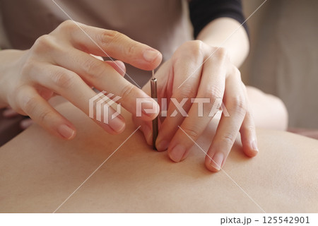 鍼灸院で背中に鍼治療をする女性