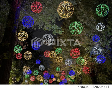 竹あかりのイルミネーションで彩られた夜の寺