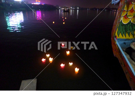 Floating lanterns / トゥボン川で船の上から流す“灯篭流し” @ベトナム・ホイアン