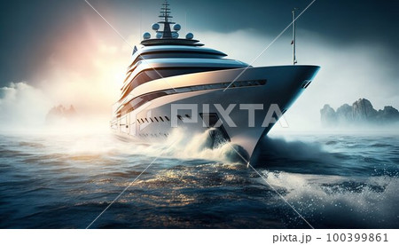 Luxury superyacht sailing in the sea. Generative AI