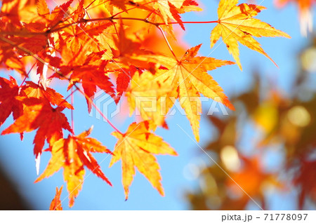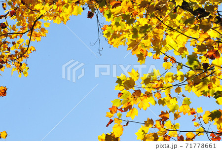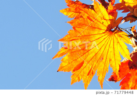 色鮮やかな秋の楓 青空に輝く秋のカエデ