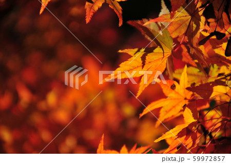 陽光に輝く真っ赤なモミジ 秋色に染まる森のモミジ