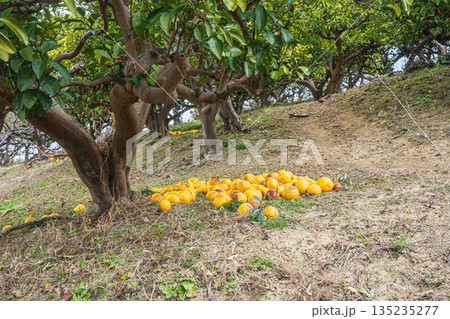 冬の明日香の果樹園 落下した果物 奈良県明日香村