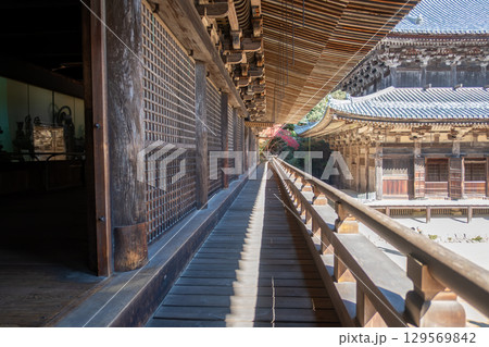 Daikodo, Serene walkway in traditional architectural setting at Engyoji mountain Shosha, Himeji, Japan