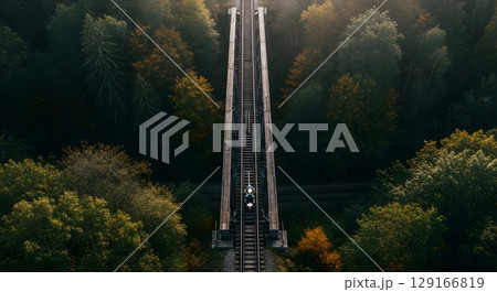 Aerial View Of Metal Bridge Spanning Across The Dense Green And Yellow Forest During Daytime