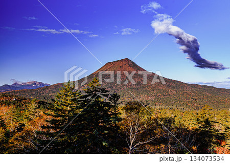 阿寒の大地にそびえる雄阿寒岳の秋景色