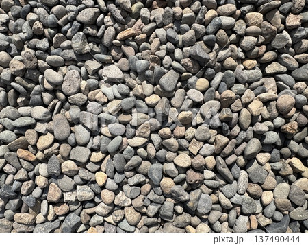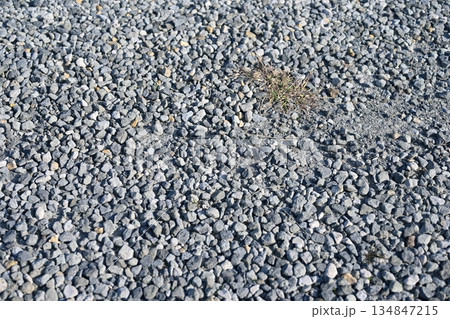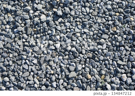 敷き詰められたたくさんの小さな灰色の砕石の横長の画像素材