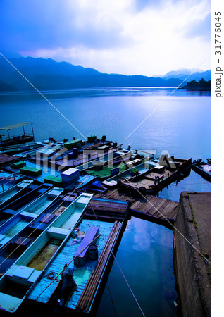 日月潭伊達邵碼頭天空倒影