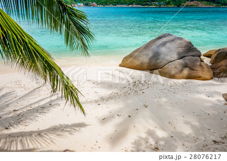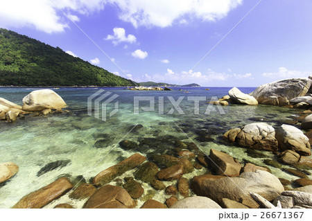 Breathtaking view of a secluded beach with crystal clear waters and rocky formations on the Perhentian islands. Malaysia