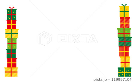 山積みされたギフトボックスのクリスマスカラーのシンプルなイラスト