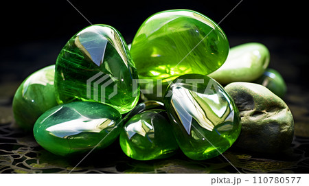 Prasiolite gemstone on dark background