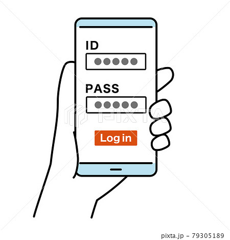ログイン画面のスマートフォンのイラスト 線画カラー