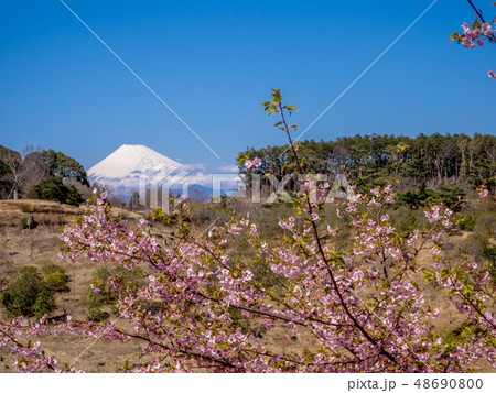 快晴の伊豆半島 行楽地から見る富士山 修善寺「虹の郷」