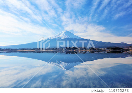 冬の青空と逆さ富士