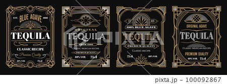 Vintage tequila labels, alcohol frames background, Mexican drink beverage vector sign. Blue agave premium quality gold or silver tequila label templates for bottle of premium quality tequila drink