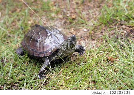 首を引っ込めるリクガメ(ヨツユビリクガメ)