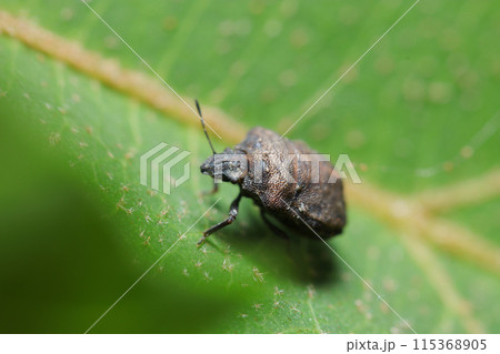 黒褐色の石ころのようなハナダカカメムシ(自然光&ストロボ・マクロレンズ接写)