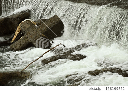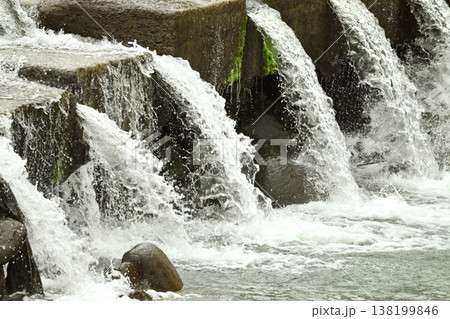 河川の氾濫 増水 溢水 越水 豪雨 A river overflows
