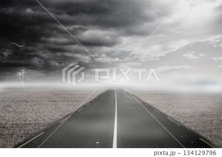 Stormy landscape with street