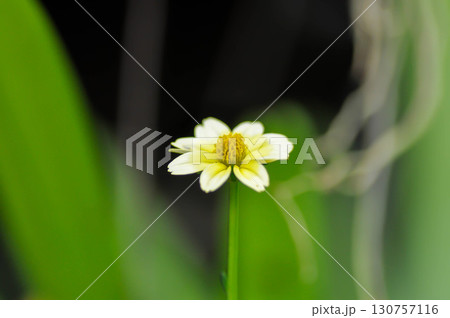 台湾の山に咲く1輪のタチアワユキセンダングサ(立泡雪栴檀草)と1匹の虫1