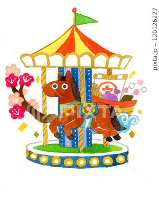 午年年賀状テンプレート メリーゴーランドの可愛いベクターイラスト素材