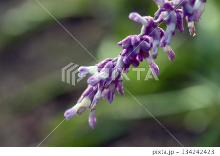 夏の庭に咲く紫色のサルビア・レウカンサの花穂