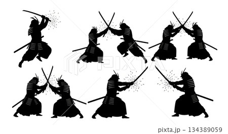 Kendo Silhouette Set - Traditional Japanese Martial Arts Illustration and Clipart