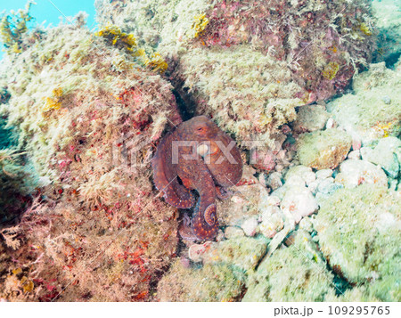 ヒリゾ浜の大きな美しいワモンダコ(マダコ科)。 静岡県伊豆半島賀茂郡南伊豆町中木から渡し船で渡るヒ